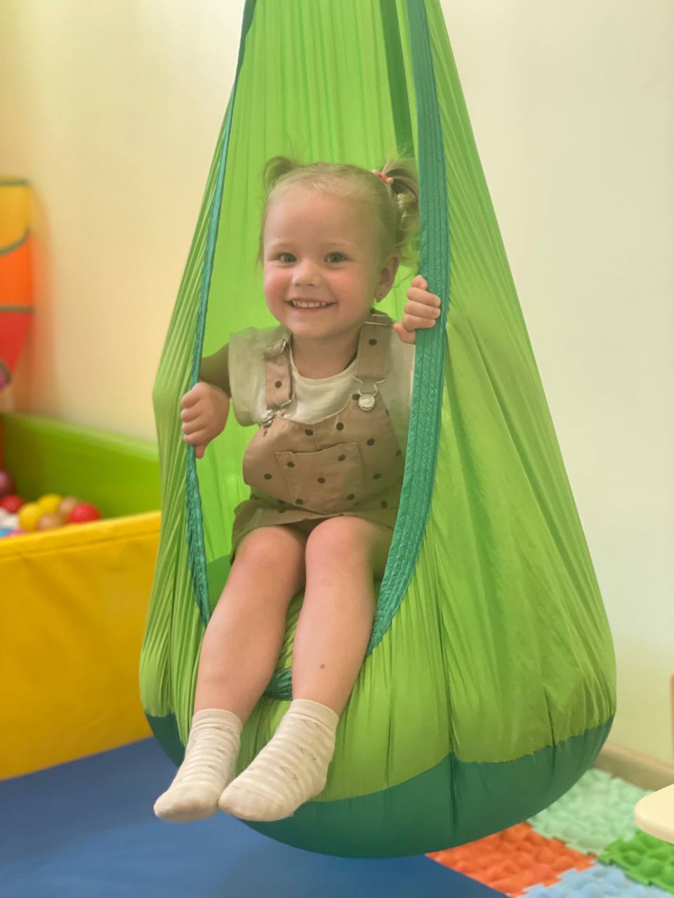 Простір облаштований відповідно до сучасних вимог інклюзивної освіти: сенсорні матеріали, дидактичні ігри, м’які модулі, розвивальне обладнання допомагають кожній дитині відчувати себе впевнено та спокійно.