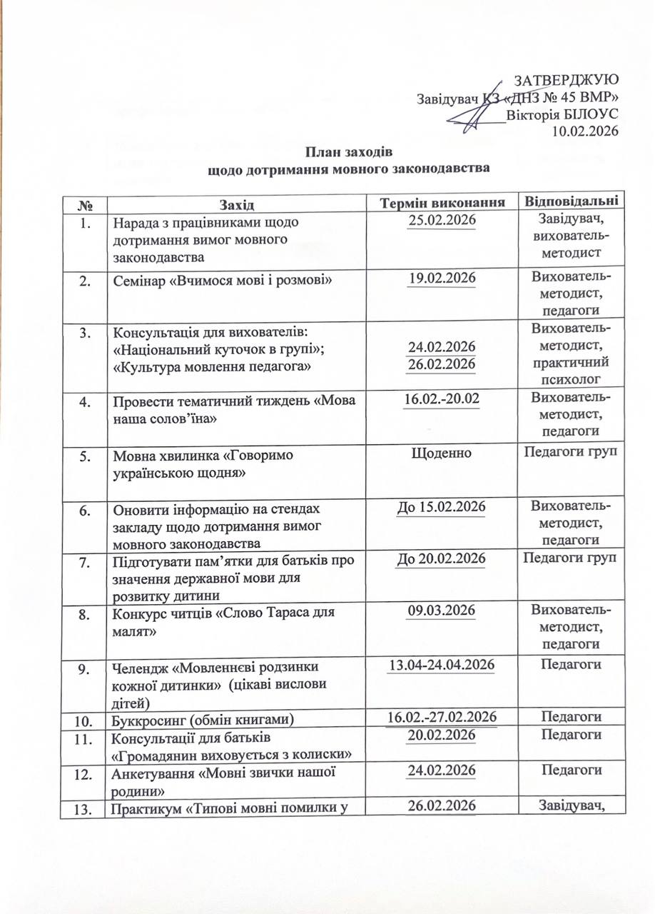 План заходів з дотримання мовного законодавства